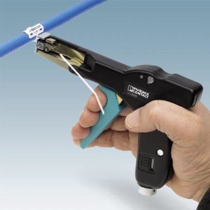 Ferramenta ergonômica para tensionar e separar os agrupadores de cabo durante uma operação de trabalho;
