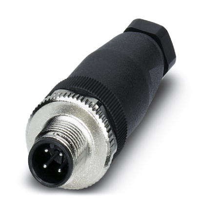 Conector Macho e Fêmea, 4, 5 ou 8 pólos, soquete reto M12, codificação A, conexão a parafuso, material serrilhado: fundição de zinco sob pressão, niquelado, prensa-cabos Pg7, diâmetro externo do cabo 4 mm ... 6 mm.