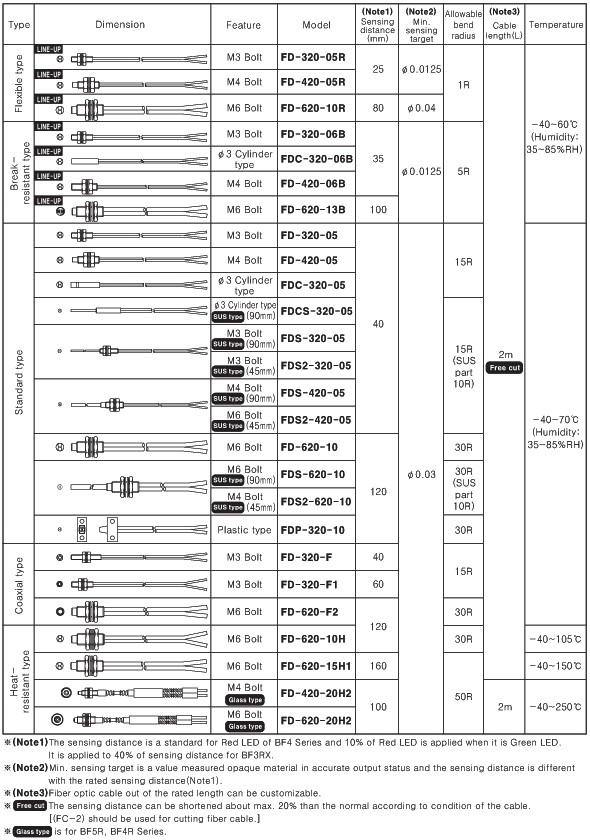 A série de cabos de fibra óptica FD/FT/GD/GT oferece diversos tipos. Especialmente a série FD/FT que apresenta mais flexibilidade (6 modelos) e resistência a quebra (7 modelos) com alto desempenho. O tipo de cabo flexível realiza 1R de raio curvatura comparado com os modelos existentes (15R/30R) para instalações livre, o tipo resistente a quebra com alta resistência são apropriados para ambientes que exigem movimentos repetitivos.