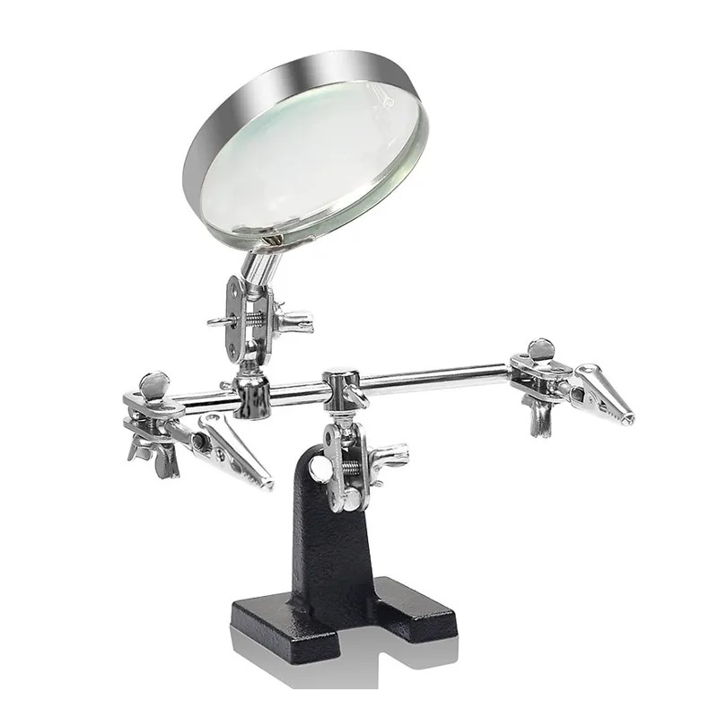 - Lupa com Suporte para Ferro de Solda e Garras Articuláveis