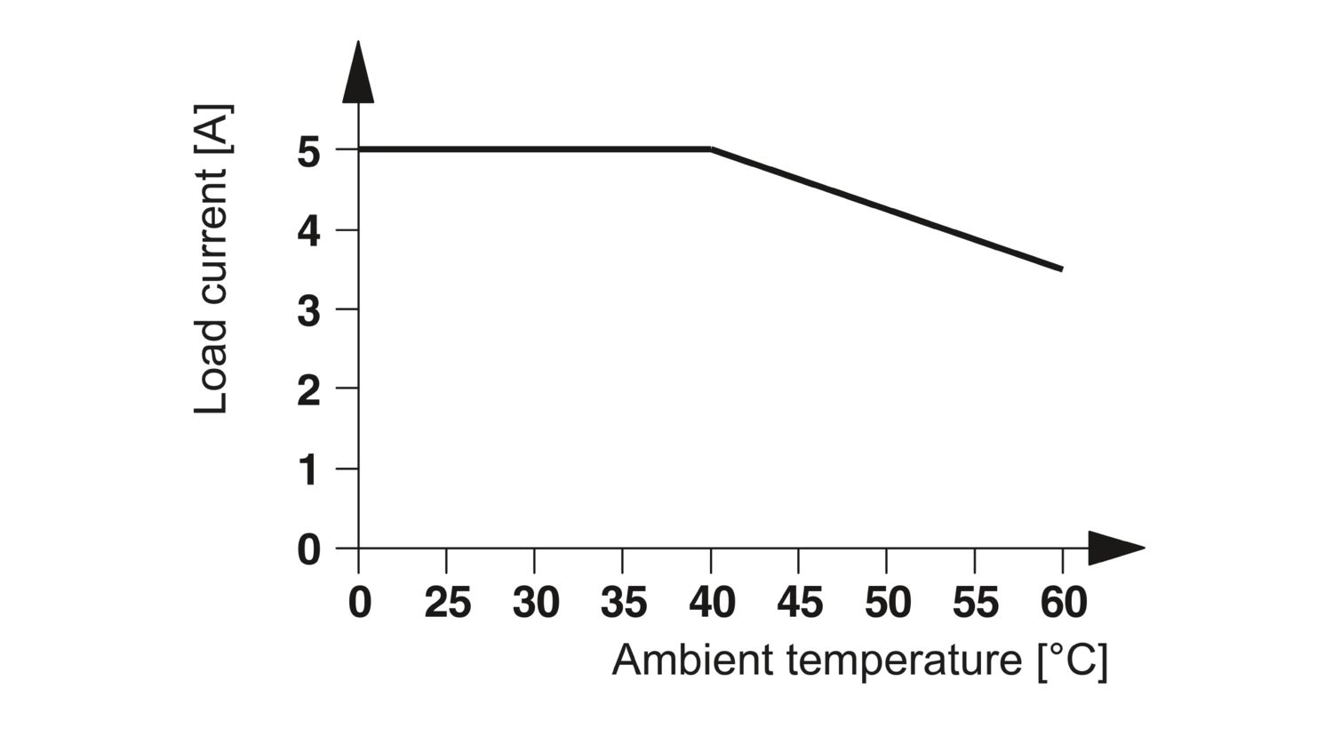 - Corrente limite permanente 5 A (vide curva derating)