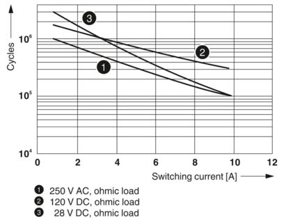 - Limitar a corrente contínua 10 A (contato NA) - 5 A (contato N/C)