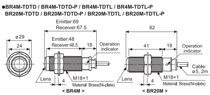 A série de sensores fotoelétricos BR é um sensor cilíndrico de 18mm. A série possui modelos com distancia de detecção de até 20 metros, com velocidade de resposta de 1ms. A série também possui maior resistência a ruído com processamento de sinal digital e proteção contra curto circuito na saída e inversão de polaridade.