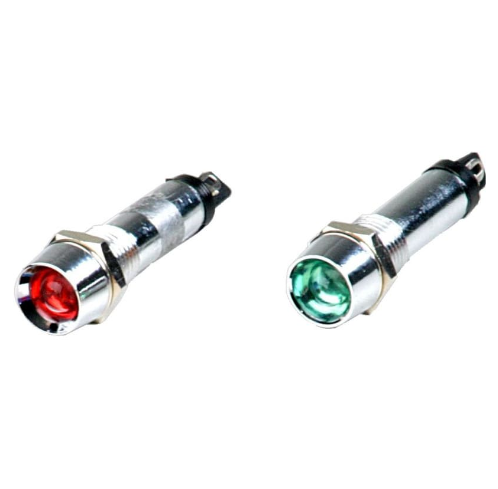 Sinaleiro LED 8mm e alimentação de 12~24VCC ou 12~400VCA. Diversas cores de lente.