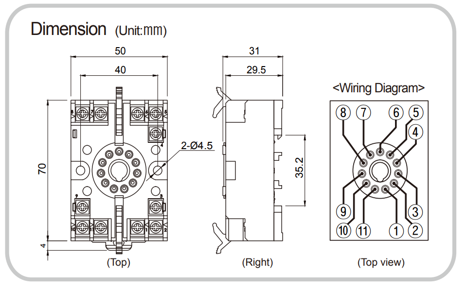 Soquete p/ Trilho DIN 11 Pinos PS-11 Autonics
