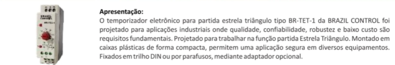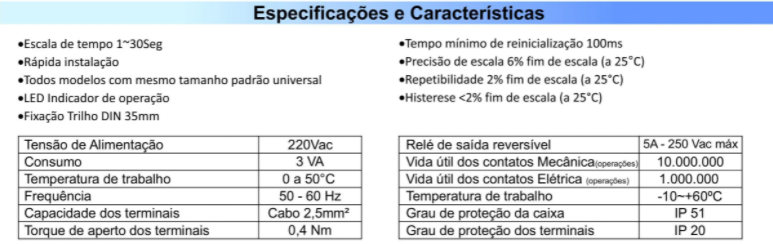 TEMPORIZADOR RETARDO NA ENERGIZAÇÃO BR-TET-1-30SEG 220VCA