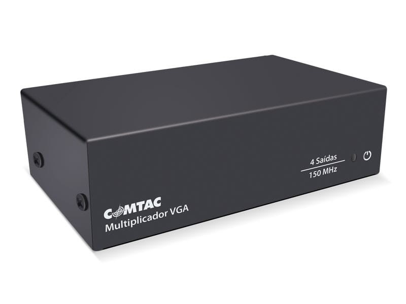 O Multiplicador de Vídeo VGA - 4 Saídas Comtac é um aparelho que permite enviar um único sinal de vídeo VGA do computador para quatro telas VGA (TVs, monitores e projetores) simultaneamente, a uma distância de até 25 metros com eficiência e qualidade.