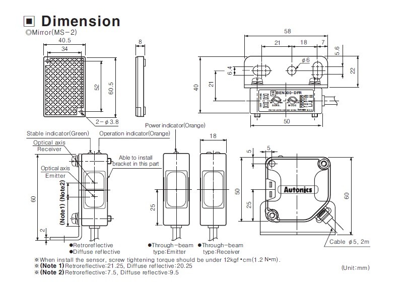A série BEN tem um tamanho compacto e uma alta performance com velocidade de 1ms. Este tipo de sensor tem leds indicadores de alto brilho, indicadores para permitir que os usuários possam identificar o estado de funcionamento dos sensores de uma longa distância. Com ajuste de sensibilidade nos modelos Retrorefletivo e Difuso. Proteção contra curto circuito na saída, proteção contra ruído, inversão de polaridade. Corrente de consumo 50mA. Grau de proteção IP50. Cerificação CE.