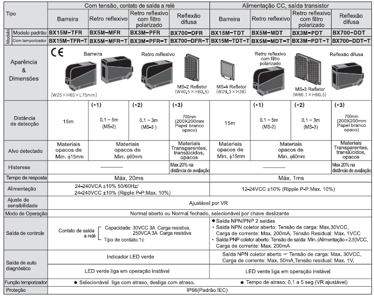 A série BX foi construída com função timer e habilitação de seleção ON Delay, OFF Delay e one-shot Delay usando uma chave. Este modelo pode executar um desempenho e sensoriamento superior, ajuste de sensibilidade VR incorporado. Além disso, a conveniência do usuário foi melhorada ao introduzir uma grande variedade de tensões de alimentação.